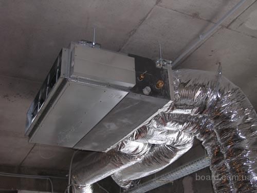Sur les grandes surfaces, l'installation d'équipements de gaines est difficile, par conséquent, la maintenance des grands bâtiments est effectuée par des unités de ventilation d'alimentation et d'extraction pour les bureaux en combinaison avec des ventilo-convecteurs refroidisseurs et des systèmes DRV.
