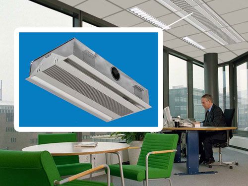 Climatisation au plafond Unité de ventilation d'alimentation pour bureau... Injecte l'air frais de la rue directement dans le bureau. L'écoulement de l'air se produit en le déplaçant dans les couloirs et les halls. D'une superficie de plus de 40 m². mètres l'air est évacué directement de celui-ci. Les unités d'alimentation pour la ventilation des bureaux sont utilisées pour des surfaces allant jusqu'à 100 m². mètres;