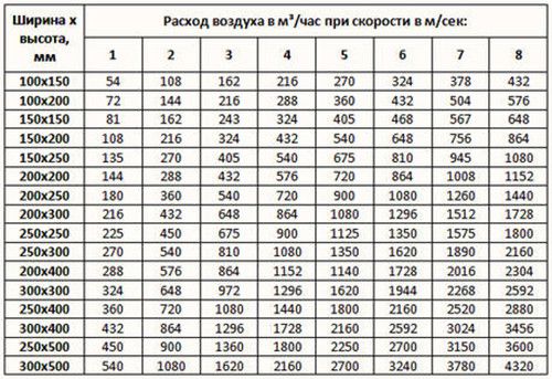 Il est nécessaire de connaître les dimensions globales de la hotte, car la qualité de l'échange d'air dépendra de ces paramètres. La quantité d'air extrait peut être déterminée à l'aide de la formule suivante : L = 3600vz x Sz, où L est le débit d'air (m3/ h), vz est la vitesse de l'air dans le dispositif d'échappement (un tableau spécial est utilisé pour déterminer ce paramètre), Sz est la surface d'ouverture de l'unité de ventilation.