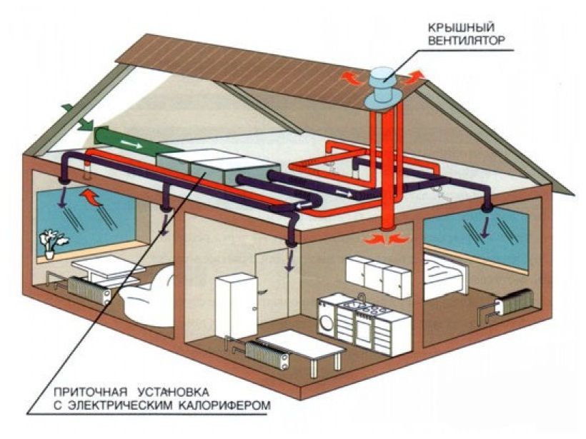 La ventilation forcée dans une maison de campagne peut être entièrement mécanique ou combinée.