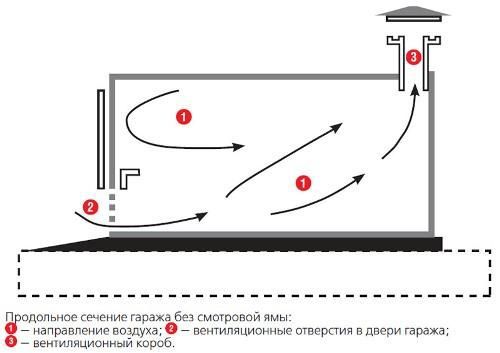 Les normes du SNiP établissent que le volume d'air frais entrant dans le garage doit être de 180 litres par heure et que l'air doit changer complètement pendant la journée 6 à 10 fois.