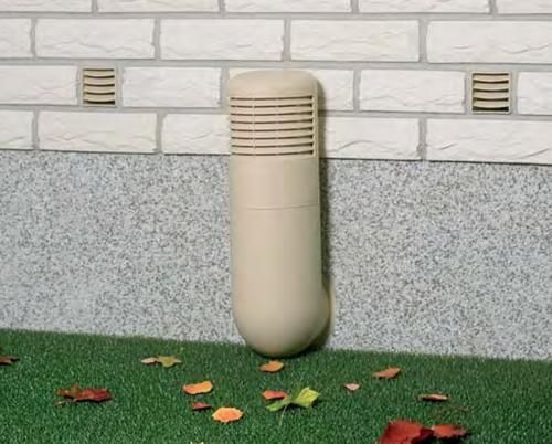 - Les trous qui restent entre les tuyaux et les murs doivent être remplis de scellant. Pour protéger le conduit des débris, des corps étrangers et des rongeurs, des grilles métalliques sont utilisées pour fermer les extrémités des tuyaux. De petits dômes sont utilisés pour protéger le tuyau supérieur de la pluie et de la neige.