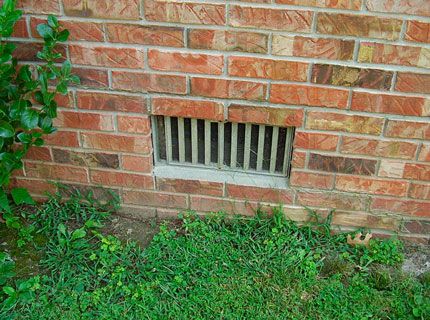 Faites des bouches d'aération sous chaque mur de la maison, ou au moins sous deux murs opposés. De nombreuses photos et vidéos de formation vous aideront à comprendre comment bien aménager la ventilation au sous-sol. Notre photo montre que les trous doivent être pourvus de grilles de "invités" à quatre pattes. De plus, la ventilation naturelle du sous-sol permet de couvrir partiellement les bouches d'aération durant l'hiver.