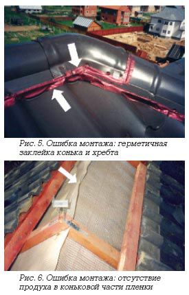 De toute évidence, les erreurs d'installation du faîtage, interférant avec le fonctionnement de la ventilation du toit sur la photo.