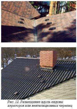 Pour un toit en tuiles, des pièces spéciales sont produites avec des bouches d'aération, qui sont installées une rangée après le faîte.