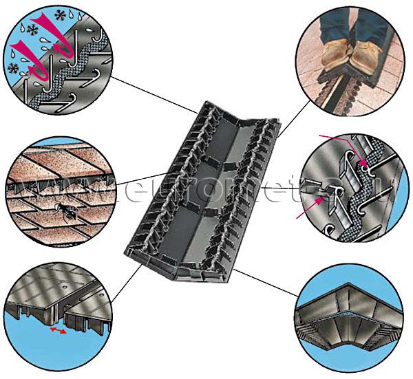 Même l'installation d'aérateurs ne fournit pas dans tous les cas une ventilation de toit décente d'un toit en profilé métallique. Par conséquent, les toits au-dessus des combles doivent être équipés d'évents de faîtage solides, quel que soit le matériau du toit.