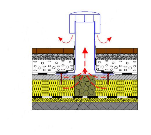 - trou de ventilation dans le gâteau de toiture;