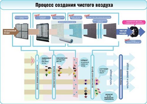 Un purificateur domestique est un ensemble de filtres, chacun caractérisé par son propre degré de purification, et un ventilateur qui aspire l'air de la pièce dans l'appareil. La plupart des modèles de purificateurs sont équipés de filtres anti-allergènes et à charbon qui piègent presque toutes les particules cancérigènes, allergènes, odeurs désagréables et toxines dans l'appartement. De plus, certains appareils sont équipés d'ioniseurs d'air, grâce auxquels l'air de la pièce devient frais, comme dans une forêt de pins.