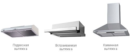Selon le mode d'installation dans la cuisine, les hottes disponibles à la vente ou commandées spécialement diffèrent également. Elles sont: