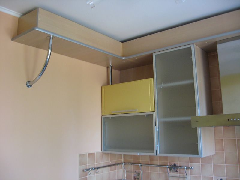 Aujourd'hui, il est assez simple de résoudre un tel problème. Pour ce faire, vous pouvez utiliser différentes options. Le plus courant est l'utilisation d'une boîte en plastique spécialement conçue à cet effet. Une telle boîte peut être située sur n'importe quelle partie du mur - sous le plafond, au-dessus des meubles de cuisine, etc. Le tuyau d'échappement peut également être caché sous une cloison sèche. Pour ce faire, il sera nécessaire de réaliser un cadre profilé en métal, qui sera ensuite cousu avec des plaques de plâtre. Cette méthode est justifiée dans le cas où la ventilation est posée même au stade des travaux de réparation. Ainsi, il peut être caché et la structure en plaques de plâtre peut être utilisée comme élément décoratif de l'intérieur. De plus, une boîte de ce type peut être équipée d'appareils d'éclairage.