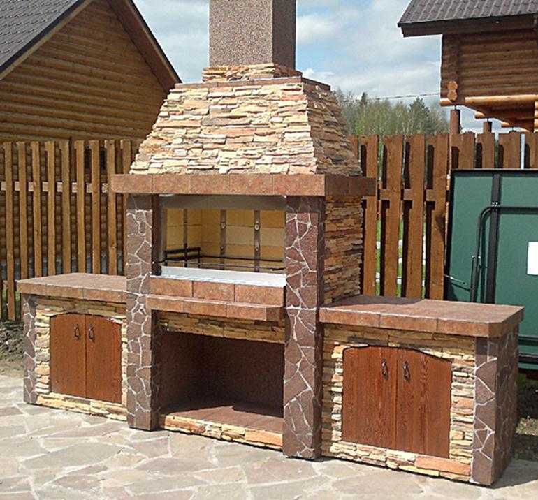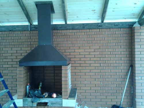 Comme indiqué précédemment, une telle hotte est généralement construite sur des barbecues en briques. Sinon, dans tous les cas, les murs de sa partie inférieure constituent la base de toute la structure. Et déjà dans ce créneau, il sera possible d'installer un brasero en métal.