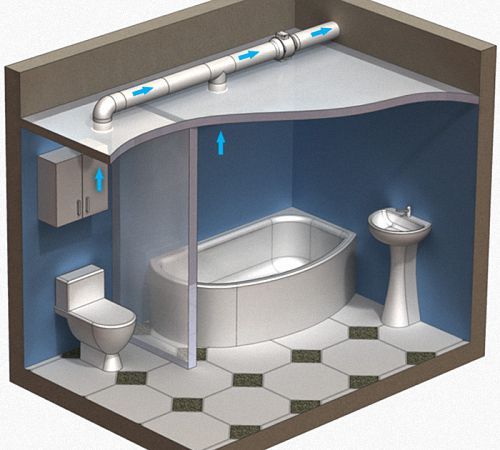 Pour assurer ce type de ventilation, il sera nécessaire d'installer un dispositif spécialement conçu - une hotte aspirante. L'installation de cet appareil s'effectue directement dans le système de ventilation ou dans le mur de la pièce. En conséquence, la hotte éliminera l'air évacué de la salle de bain, l'air frais y circulera par les fenêtres ou les portes.