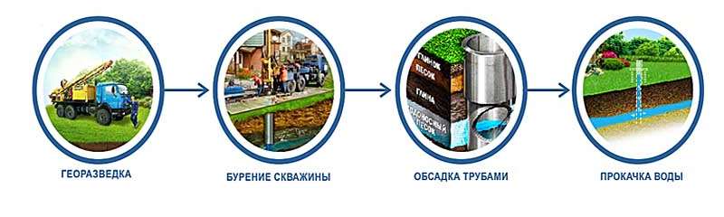 Après avoir installé le tubage et l'isolation, les tuyaux sont lavés à l'eau claire et des échantillons sont prélevés pour analyse. De plus, le puits est mis en service avec un passeport technique.