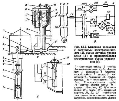 Dans l'agriculture, l'approvisionnement en eau est principalement répandu par des installations automatisées de type tour avec des pompes submersibles. Le circuit de commande de la station de pompage de la tour permet d'allumer ou d'éteindre automatiquement ou manuellement la pompe, protège le moteur électrique des courts-circuits et des surcharges et donne des signaux lumineux sur l'état de la pompe.