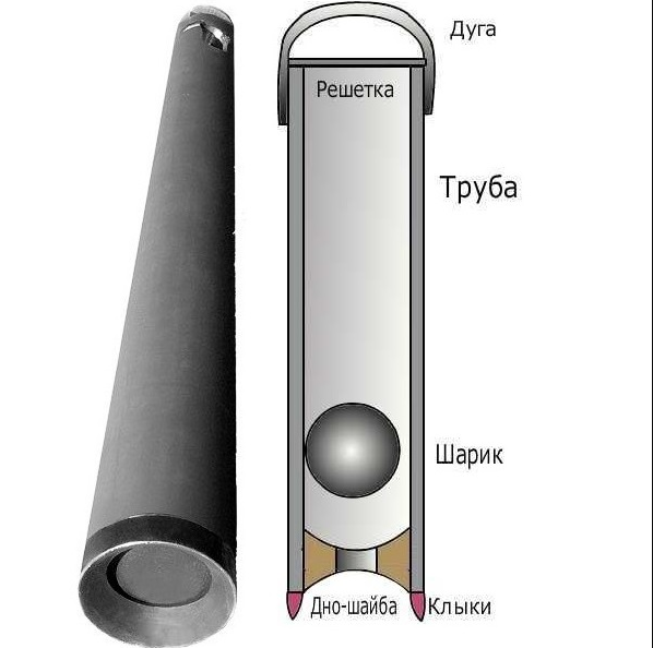 - Corde de choc. Il est utilisé lors du passage de faibles profondeurs et de formations relativement molles. L'inconvénient de cette méthode est la vitesse de perçage relativement faible. Au cours du travail, un verre puissant avec une extrémité pointue est enfoncé dans le sol et soulève l'échantillon de roche vers le haut. Tout sol que les foreurs retirent de la mine peut y pénétrer.