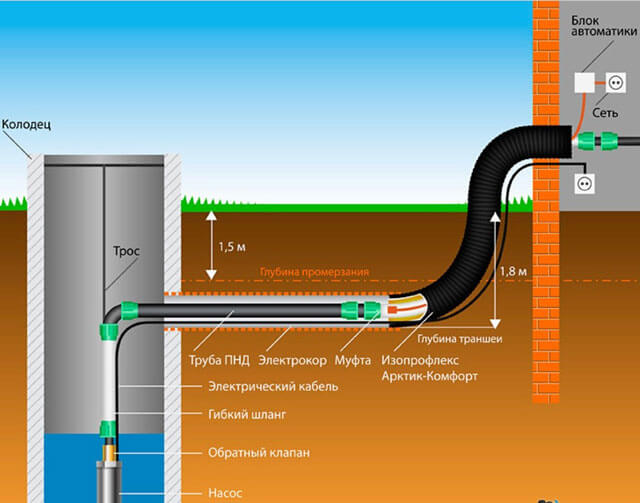 L'approvisionnement en eau d'hiver à faire soi-même d'un puits à une maison est l'une des options pour construire un système d'approvisionnement en eau autonome pouvant être utilisé toute l'année. La particularité d'une telle autoroute est que le système d'alimentation en eau est posé dans des tranchées spéciales situées sous le niveau de gel du sol et est isolé.