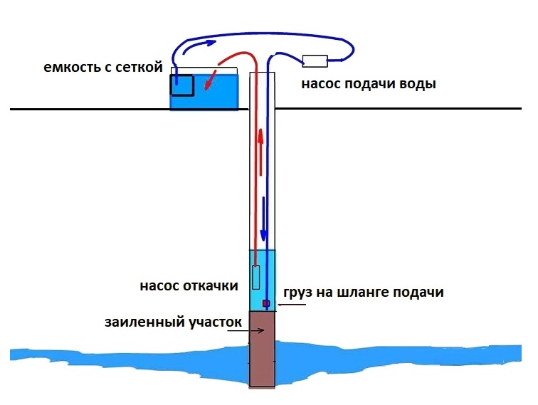 Le rinçage hydropneumatique est un bon moyen de restaurer les ressources en eau dans le puits d'une mine. La méthode est assez compliquée et n'est réalisée que par des professionnels. Pour travailler, vous aurez besoin d'un puissant compresseur pneumatique et d'une pompe à eau. Les impuretés sont éliminées par l'action de l'air et de l'eau sous pression. Dans ce cas, il est nécessaire d'assurer un apport continu d'eau au puits pour le rinçage.