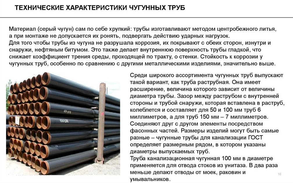 Cependant, il existe des tuyaux en fonte sur le marché, car il existe encore des exigences pour les réseaux d'alimentation en eau auxquelles seul ce matériau répond.