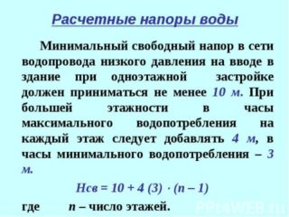 Les appareils de plomberie les plus récents sont rares dans les immeubles à plusieurs étages, ils peuvent donc être négligés lors du calcul de la pression dans les conduites d'alimentation en eau des appartements. Mais si l'installation d'une telle plomberie est prévue, ce paramètre devra être pris en compte. Si la pression réelle dans les tuyaux est faible, vous devrez réfléchir à un moyen d'augmenter la pression. L'option la plus simple est d'installer la pompe.