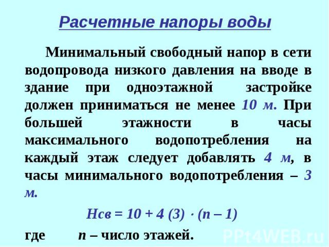 Les réseaux d'approvisionnement en eau sont conçus sur la base du SNiP numéroté 2.04.2-84, qui réglemente clairement les normes d'approvisionnement en eau des appartements. Ce document fixe quelle doit être la pression d'eau dans le système d'alimentation en eau des immeubles d'habitation et des bâtiments privés.