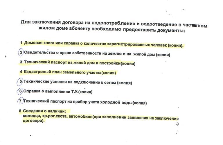 L'eau est la richesse du pays, donc personne ne peut l'utiliser gratuitement, surtout si elle est fournie par le réseau d'approvisionnement en eau. Par conséquent, un accord doit être conclu entre le consommateur et le service des eaux pour la fourniture d'eau et son évacuation par les systèmes d'égouts. Pour cela, des contrats types sont utilisés, qui sont approuvés par le décret du gouvernement de la Fédération de Russie sous le numéro 645 du 29 juillet 2013. Les contrats d'approvisionnement en eau froide et d'assainissement avec une personne morale ou une personne physique sont conclus après que l'abonné a soumis des documents pour la propriété d'un bien immobilier ou d'un terrain. Une demande est soumise à l'organisme de distribution d'eau, où elle sera examinée dans les 20 jours.