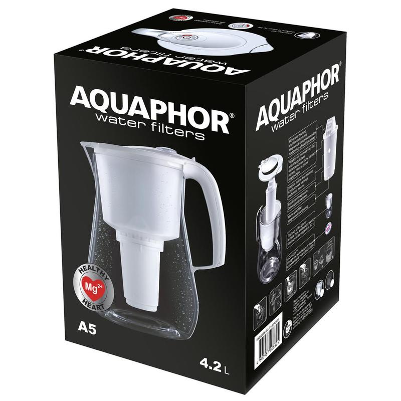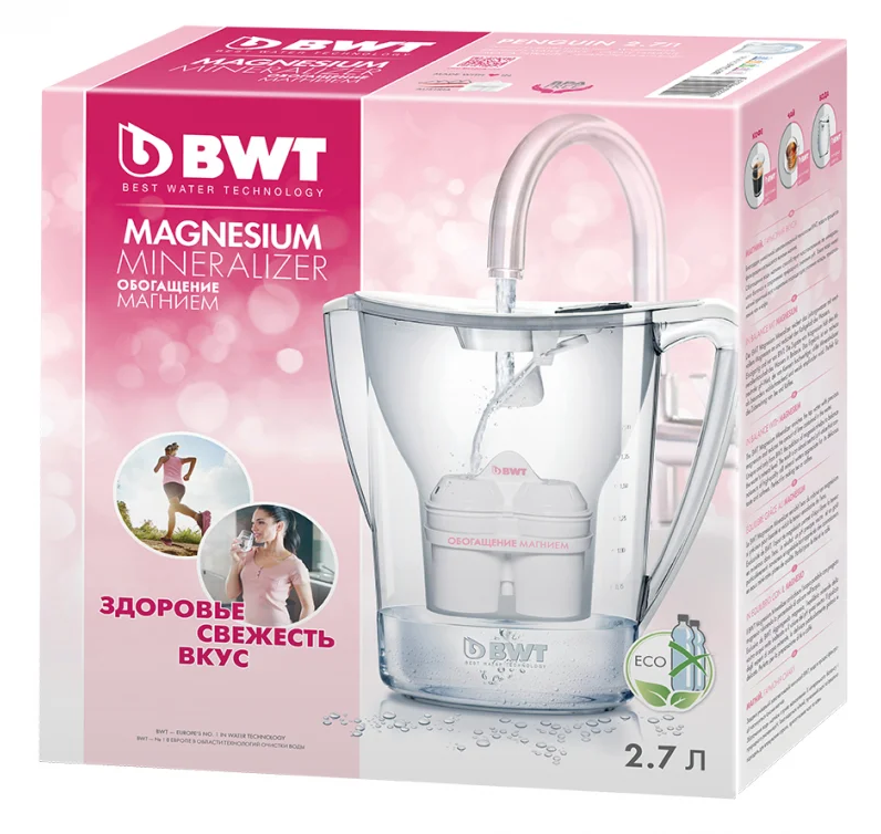 Carafe filtrante d'un volume de 2,5 litres et d'un entonnoir de 1 litre. La cartouche amovible est installée à l'aide d'un raccord fileté, ce qui augmente l'étanchéité du produit et évite les fuites de liquide non traité dans le réservoir de réception. L'avantage du modèle est la présence d'une minuterie électronique qui informe les utilisateurs de la nécessité de changer le filtre. Il fonctionne sur le principe d'un aimant et détermine le volume d'eau fourni pour le traitement.