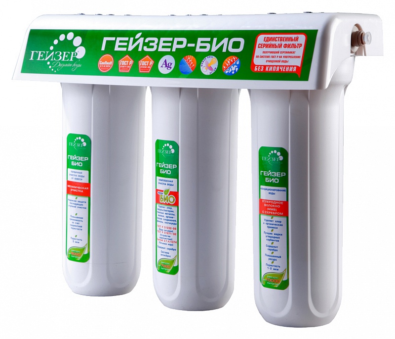 - "Geyser". Les appareils de cette marque ont un système de nettoyage en trois étapes. Il existe une possibilité de combiner des cartouches remplaçables pour se débarrasser des suspensions typiques.