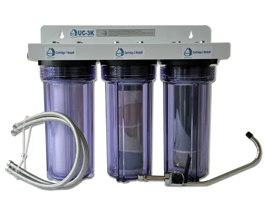 - Filtre sous évier à base de charbon actif. Également une solution appropriée pour une maison de campagne avec eau courante. Il nettoie bien des salissures diverses, mais nécessite un changement systématique de la cartouche.