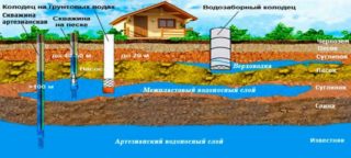 Lors du forage de puits avec de l'eau sous pression, la technologie suppose que le liquide est fourni au voleur en le pompant du conteneur à l'aide de tuyaux. Vous devez aller plus profondément dans le sol jusqu'à ce que vous atteigniez l'aquifère. La profondeur moyenne à creuser par le MBU est de 50 m.