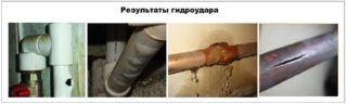 Un phénomène similaire se produit accompagné de divers bruits à l'intérieur du pipeline, clics, robinets. Si vous n'attachez pas d'importance aux sons, cela menace de graves conséquences. Les coups de bélier provoquent la fissuration et la rupture des canalisations, entraînant la panne des équipements et des vannes.