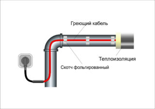 Parfois, il y a des erreurs dans le choix des conduites d'eau en polymère qui ne résistent pas aux basses températures, ou le pipeline ne peut pas être posé à la profondeur requise pour des raisons techniques. Dans ce cas, la canalisation est chauffée à l'aide d'un câble chauffant connecté au secteur. Cette technique est souvent utilisée dans les régions où les températures hivernales sont les plus froides pour éviter l'éclatement des tuyaux ou le gel de l'eau à l'intérieur.