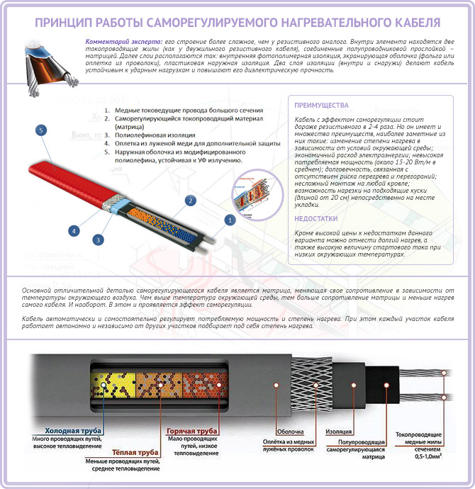 Le câble résistif a un avantage - dans le prix, comme en témoignent les critiques des propriétaires mécontents de conduites d'eau et d'égouts. Désavantages: