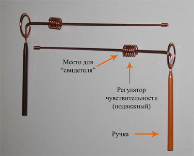 Pour utiliser la méthode de radiesthésie, vous devez créer un cadre en forme de lettre "L" à partir d'électrodes de soudage ou de fil d'acier. La longueur des poignées est d'environ 150 millimètres, les sites de recherche sont d'environ 350 millimètres.
