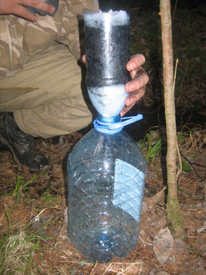 - Dans des conditions de terrain, des tampons de coton ou de la laine de coton propre sont insérés dans le cou. Si le filtre est préparé pour un usage domestique, il est préférable de privilégier le lutrasil plié en plusieurs couches.