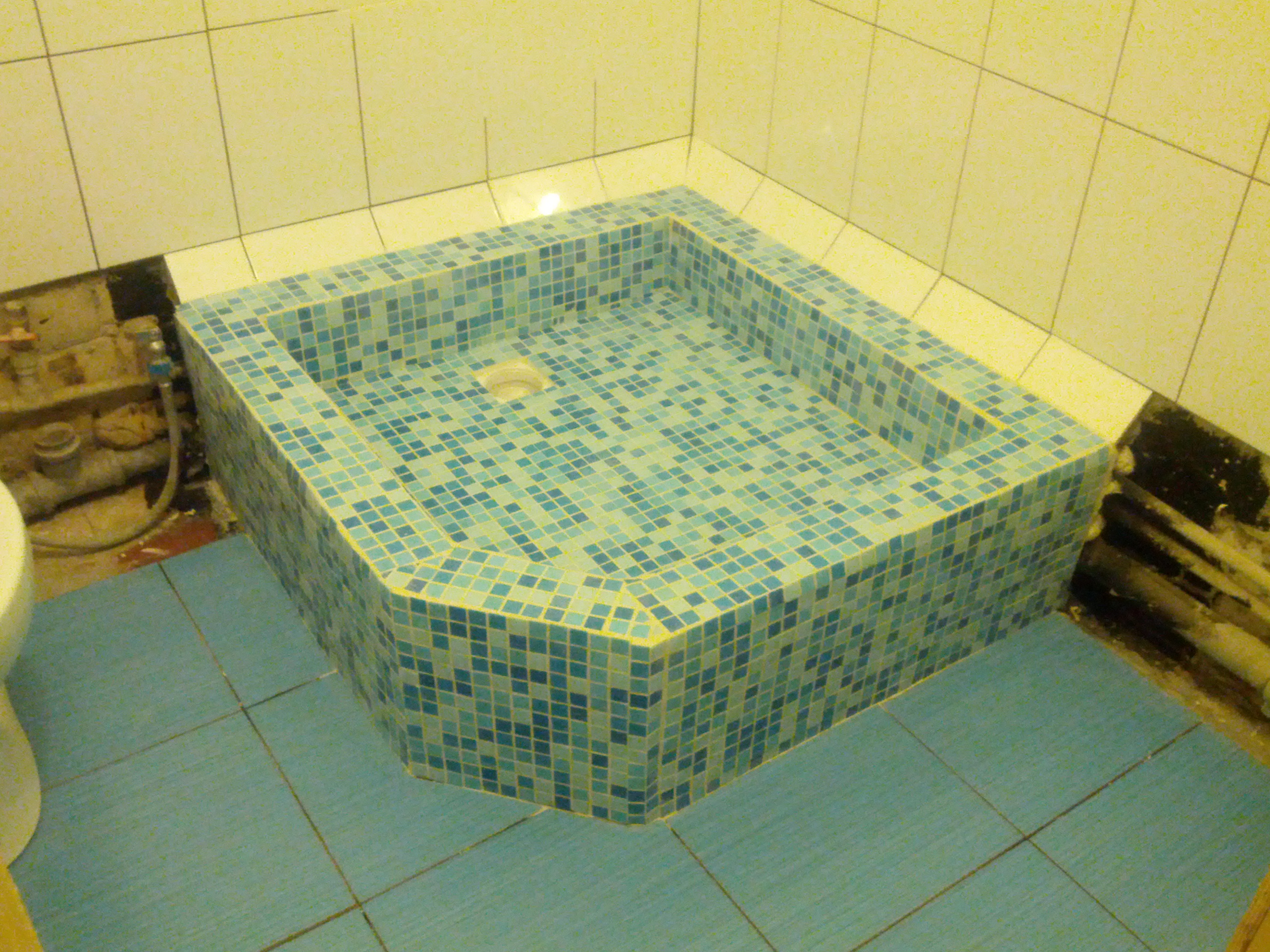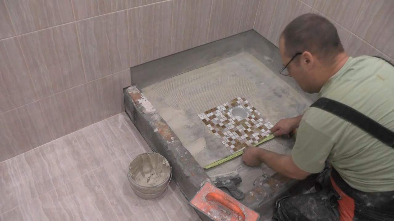 - pour le revêtement d'une douche de forme non standard, les petits carreaux sont les plus appropriés - des copeaux de mosaïque individuels ou des blocs sur un treillis en plastique;