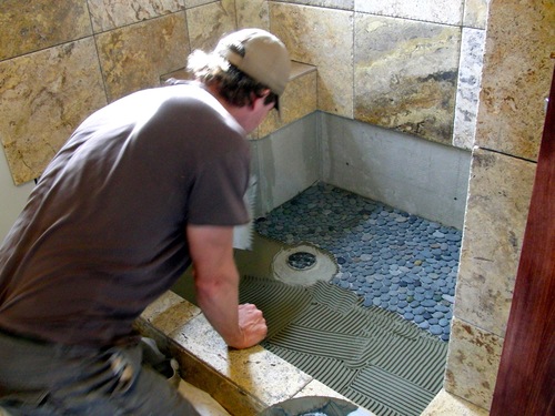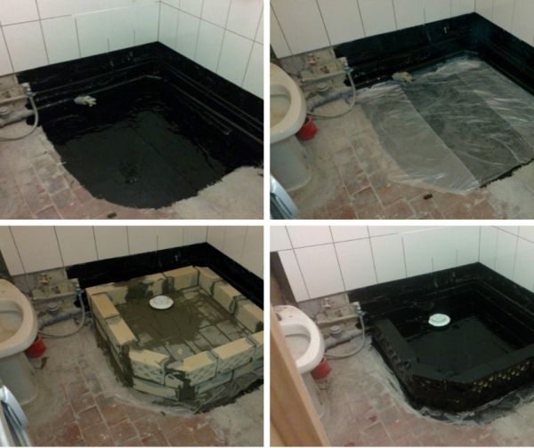 - contrôler le niveau de la pente de la surface jusqu'au drain, gardez à l'esprit que la colle peut rétrécir;