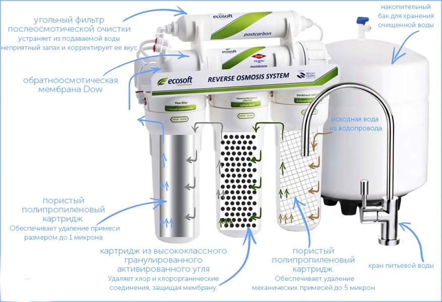 Le meilleur filtre pour adoucir l'eau dure d'un puits et améliorer d'autres paramètres est un système d'osmose inverse. Il est conçu pour être installé dans une alimentation en eau sous pression. Le système se compose de plusieurs éléments filtrants qui éliminent les impuretés mécaniques, organiques, minérales et les sels de dureté. Le nettoyage principal est réalisé après passage à travers la membrane d'osmose inverse. Un inconvénient important de l'installation est le prix élevé. Parmi les constructeurs, on distingue les sociétés suivantes : Atoll, Barrière, Geyser.
