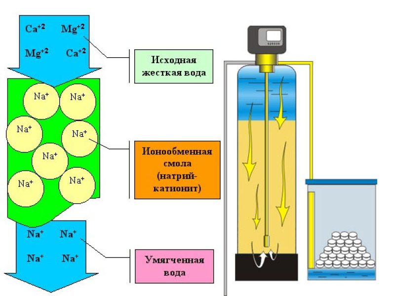 Les installations sont des colonnes ou des conteneurs en plastique avec de la résine échangeuse d'ions. Ils vous permettent d'éliminer les ions calcium et magnésium du liquide, en les remplaçant par des ions sodium. L'équipement est installé sur la canalisation devant les appareils ménagers et empêche la formation de tartre. De plus, les filtres échangeurs d'ions font partie du traitement de l'eau. Après eux, des cartouches à charbon actif doivent être placées. Les installations diffèrent par leurs performances et la taille des ressources. La résine du filtre doit être remplacée. Dans les colonnes, il est périodiquement régénéré, dans de petits flacons, les cartouches sont changées.