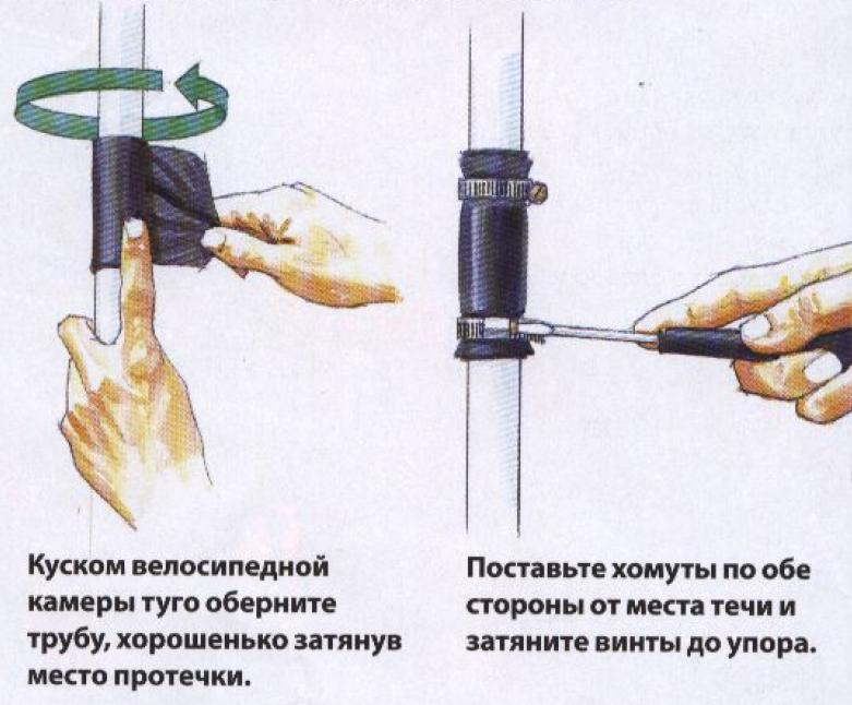 Toute fuite dans une canalisation est une urgence qui doit être rapidement neutralisée quel que soit le type de réseau utilisé (alimentation en eau, chauffage, etc.). Pour éliminer les fuites dans les conduites d'eau sous pression à la maison, il est important d'être extrêmement prudent. Surtout quand il s'agit de l'approvisionnement en eau chaude. Les brûlures et les inondations importantes ne sont pas exclues ici. Il faut se rappeler que le latka n'est pas une panacée. S'il y a un trou dans le tube, le même sort attend l'autoroute dans ses autres sections. Il est préférable de changer la tuyauterie métallique en plastique (PP, PVC) dès que possible. De plus, il est possible de fermer les fistules sur une conduite d'eau chaude ou froide uniquement lorsque le trou est petit. Si le liquide jaillit comme une fontaine, aucune pince ni aucun patch ne vous aidera.