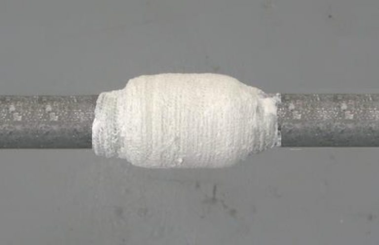 Il est placé à la place de la fissure et bien pressé/enroulé. Il reste à fixer le matériel avec un fil métallique.