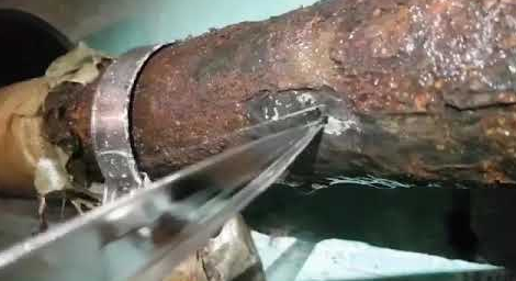 Cette méthode convient aux tuyaux en fonte et en acier qui ont une bonne quantité de fistule, mais le reste de la ligne semble visuellement solide. Il est important de tenir compte du fait que le coulis de ciment formera une charge supplémentaire sur les tubes. S'ils sont déjà assez rouillés à de nombreux endroits, vous ne devriez pas prendre le risque de cette façon. Rupture totale de ligne possible sous pression.