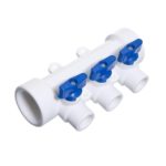 Le bloc collecteur a un nombre différent de sorties : de 2 à 6. Les produits sont équipés de deux attaches correspondant à la section du tuyau principal. Avec leur aide, plusieurs blocs sont combinés en un seul appareil sans utiliser de pièces de transition supplémentaires. Une augmentation de la longueur du peigne est nécessaire dans les chalets avec un grand nombre d'appareils de plomberie.
