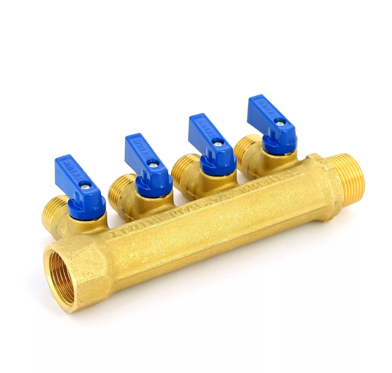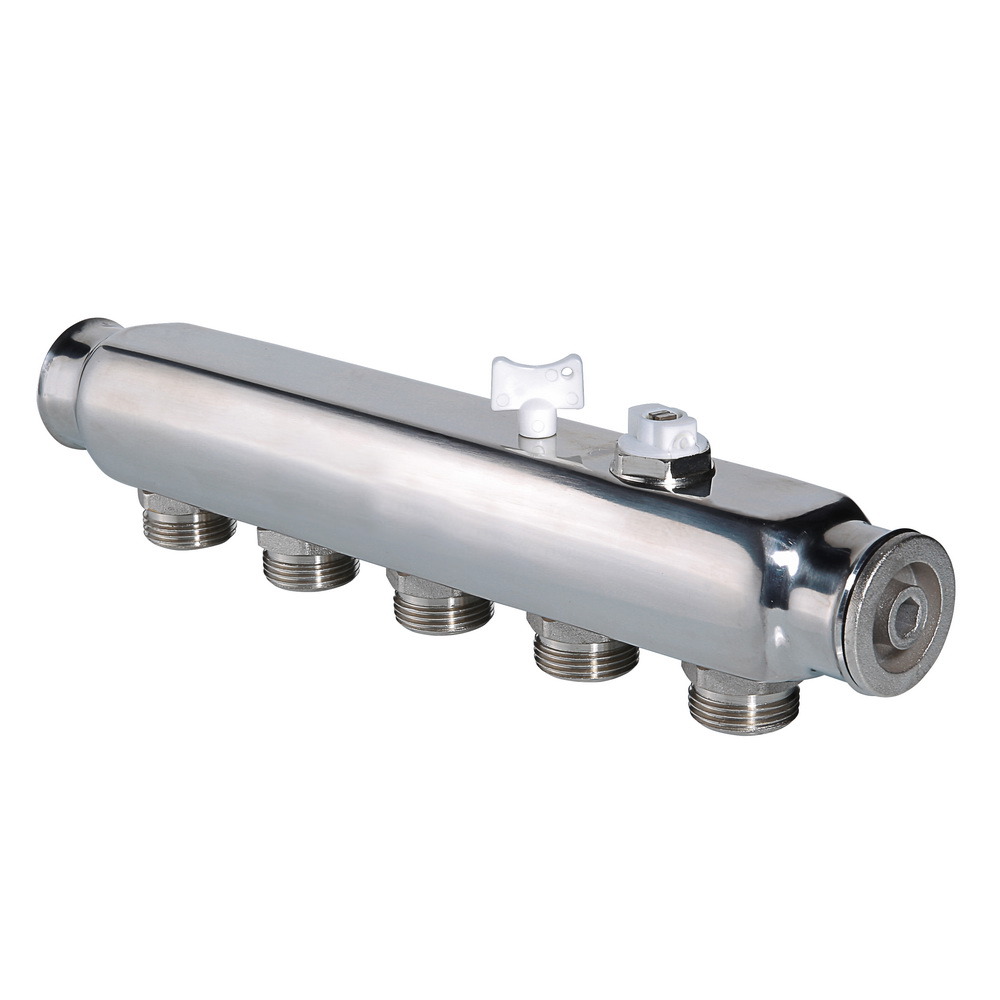 Le distributeur est connecté directement à la colonne montante. Des deux côtés, il y a un raccord fileté (sur l'un - filetage interne, de l'autre - externe) pour le raccordement au tuyau principal et aux collecteurs supplémentaires.