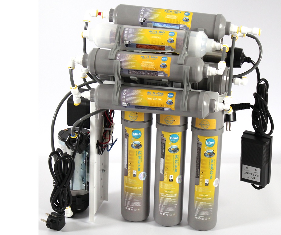 - La lampe ultraviolette détruit les bactéries et les virus, bien que la membrane elle-même ne leur permette pas de passer, car la taille des pores ne laisse passer que les molécules d'eau.