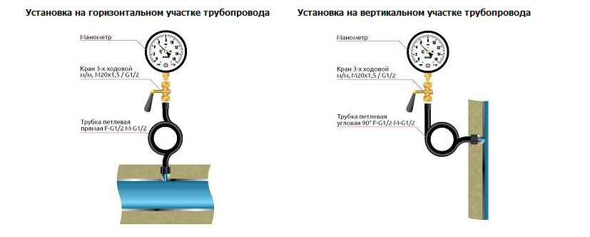 - Droit. L'appareil est monté aux endroits indiqués dans les documents de conception, par exemple avant et après les vannes.Un adaptateur est placé au point d'installation. Il est connecté à la canalisation par soudage ou vissage. Le manomètre est installé de manière directe dans les cas où le système est stable, sans coups de bélier.