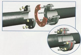 Les joints à bride sont utilisés pour connecter des tuyaux en plastique ou en polyéthylène d'un diamètre supérieur à 63 cm. Cela est dû au fait qu'il n'est pas souhaitable d'utiliser une machine à souder. Les brides sont faciles à utiliser et à installer, il existe une large gamme de tailles standard. La procédure de connexion est la suivante :