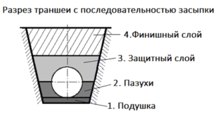 Après la pose et le compactage, le pipeline est recouvert de sable ou de gravier sur 10-15 cm, puis le sol retiré est utilisé.