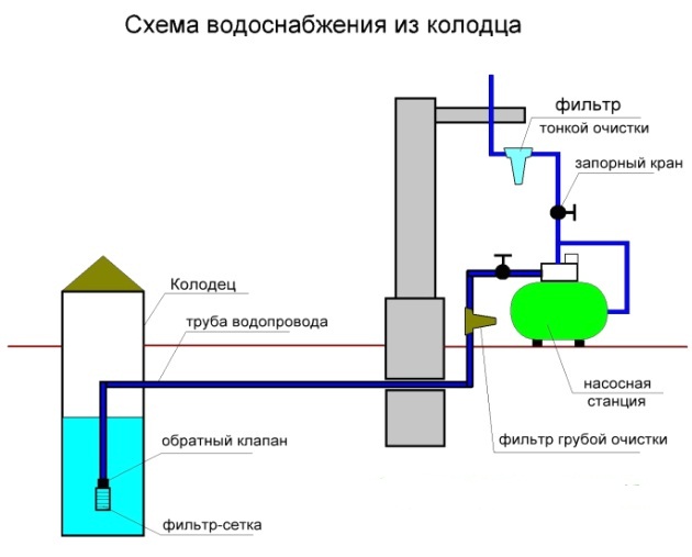 Les éléments principaux sont la pompe et l'accumulateur, car ils produisent et maintiennent une pression dans le système, sans laquelle le liquide ne peut pas remonter à la surface et entrer dans la maison.