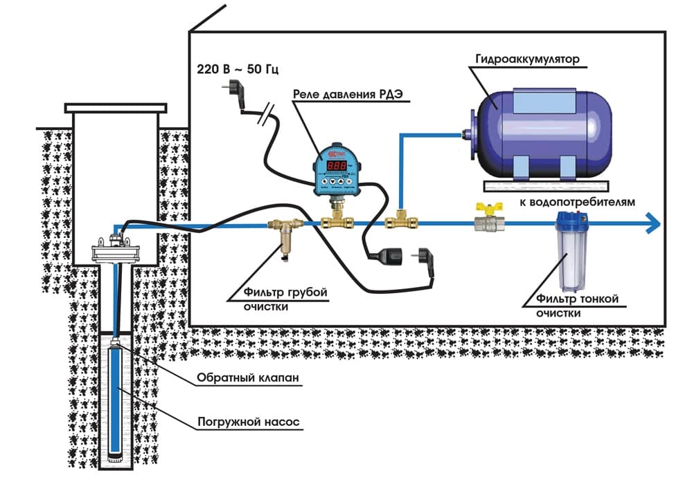 - Chaque modèle dans la documentation technique a des recommandations pour l'installation à une profondeur particulière. Si vous utilisez une pompe de 50 m à 60 m de profondeur, elle s'épuisera 10 fois plus vite.
