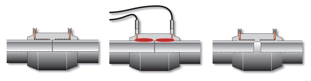 Soudage électrique : utiliser des raccords spéciaux en PEHD avec spirales intégrées. Le processus d'installation ressemble à ceci :
